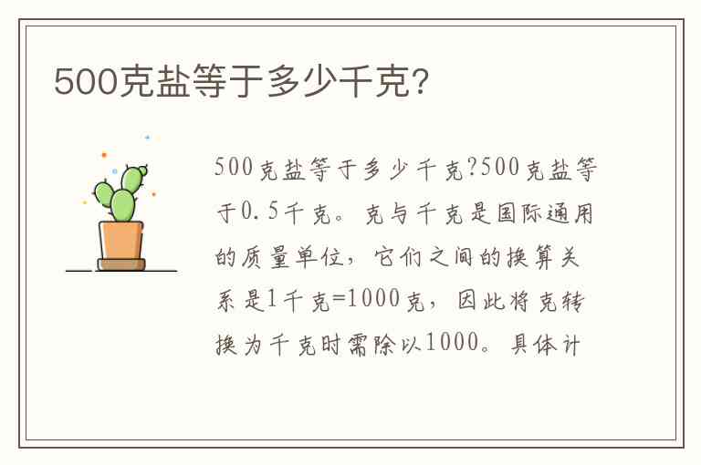 500克盐等于多少千克?