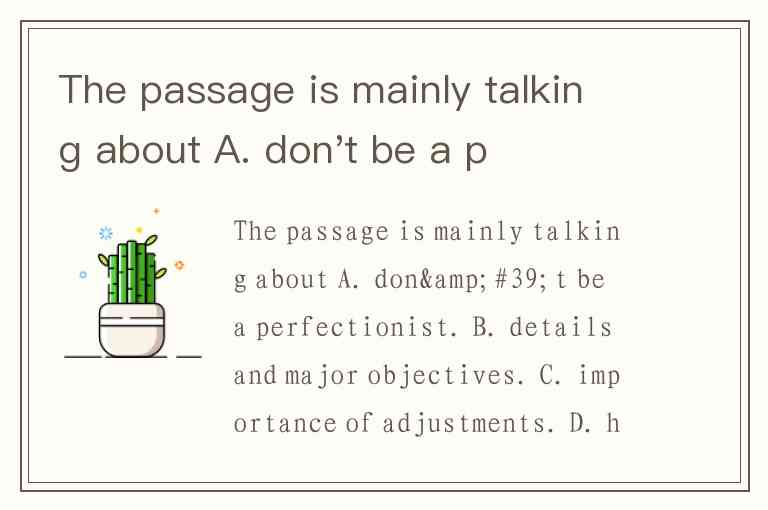 The passage is mainly talking about A. don't be a perfectionist. B. details and major objectives. C. importance of adjustments. D. hard work plus good luck.