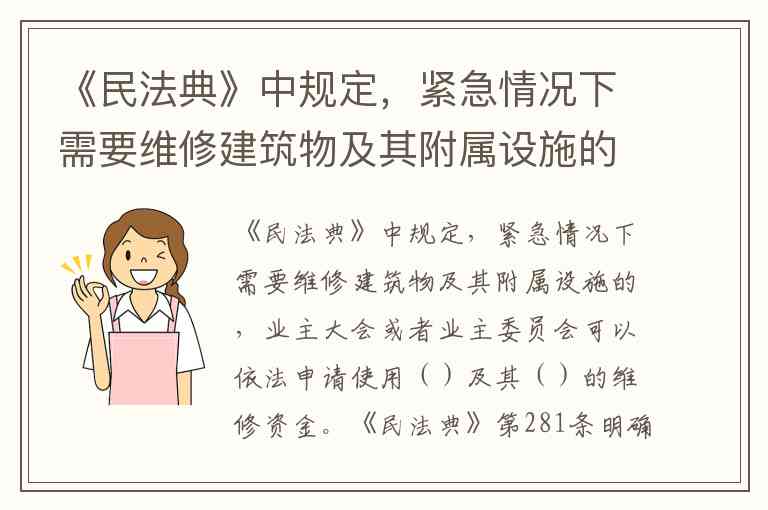 《民法典》中规定,紧急情况下需要维修建筑物及其附属设施的,业主大会或者业主委员会可以依法申请使用()及其()的维修资金。