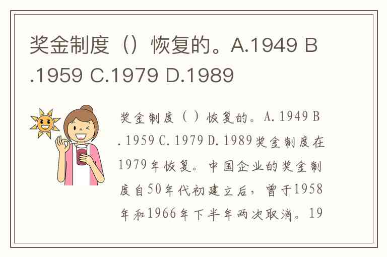 奖金制度()恢复的。A.1949 B.1959 C.1979 D.1989