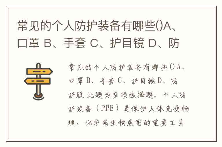 常见的个人防护装备有哪些()A、口罩 B、手套 C、护目镜 D、防护服 此题为多项选择题。