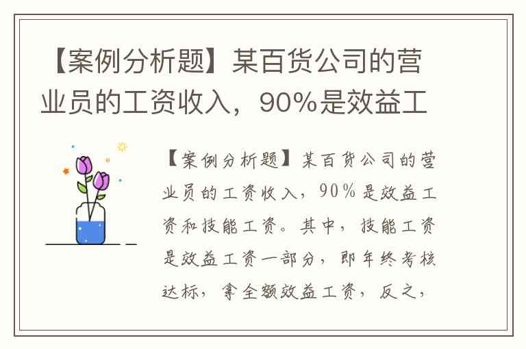 【案例分析题】某百货公司的营业员的工资收入,90%是效益工资和技能工资。其中,技能工资是效益工资一部分,即年终考核达标,拿全额效益工资,反之,扣一定数额的效益工资。效益工资按当年公司下达给商品柜组的销售任务和经营利润指标进行考核,同时把服务规范、商品质量、安全保卫等作为否定指标考核。采取2级分配方法,即实行公司对商品柜组,商品柜工资=个人实际完成销售额×提取比例;营业员必须完成当月销售指标的70%,如连续两次完不成,则下岗一次,拿该公司所在市规定的最低工资,下岗两次,则解除合同。该百货公司实行什么类型的工资制度?