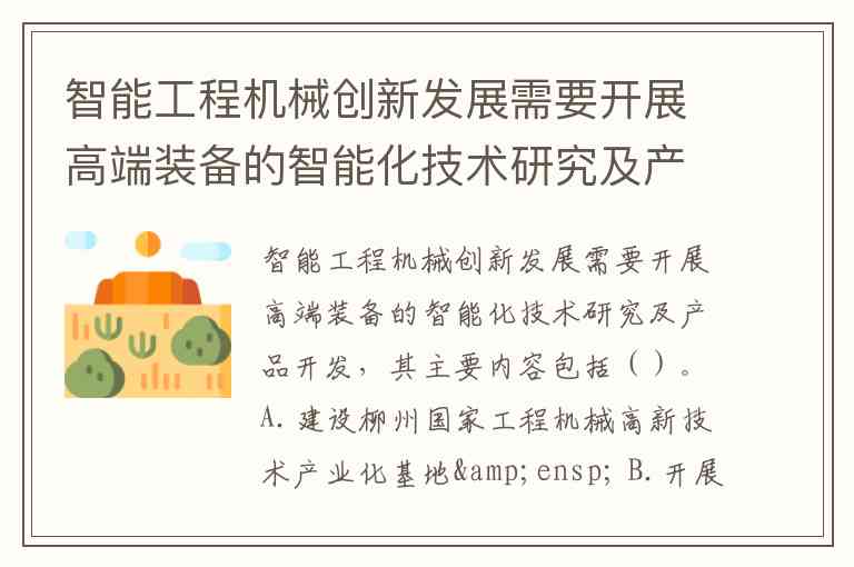 结论:D选项准确反映了智能工程机械以核心施工机械(装载机、挖掘机等)为载体,融合自动识别、自适应控制与远程监控的技术开发方向,符合“高端装备智能化技术研究及产品开发”的核心要求。这一发展路径不仅能提升单机作业效率,更能通过机群智能化体系实现施工全流程的优化管理,从而缩小与进口产品的技术差距。