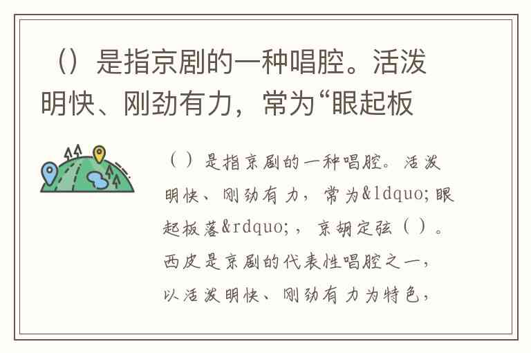 ()是指京剧的一种唱腔。活泼明快、刚劲有力,常为“眼起板落”,京胡定弦()。