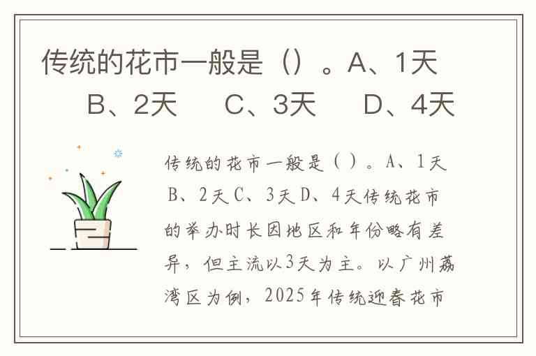传统的花市一般是()。A、1天 B、2天 C、3天 D、4天
