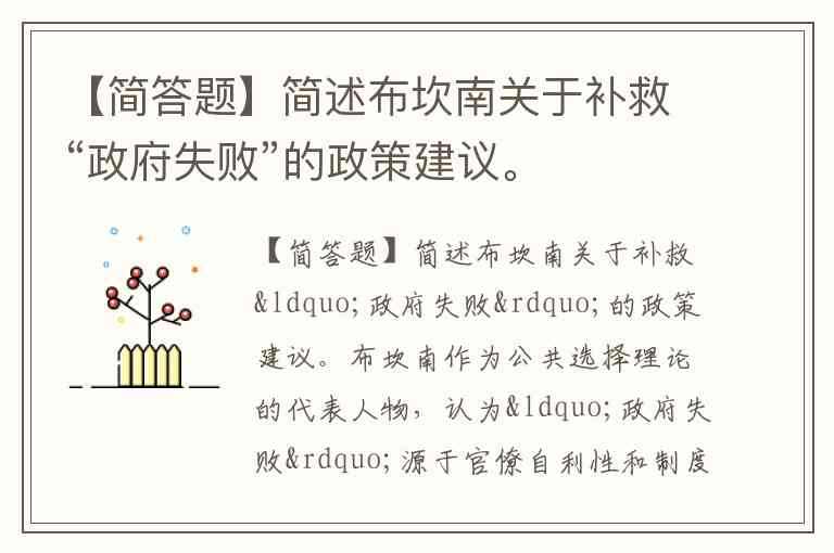 【简答题】简述布坎南关于补救“政府失败”的政策建议。