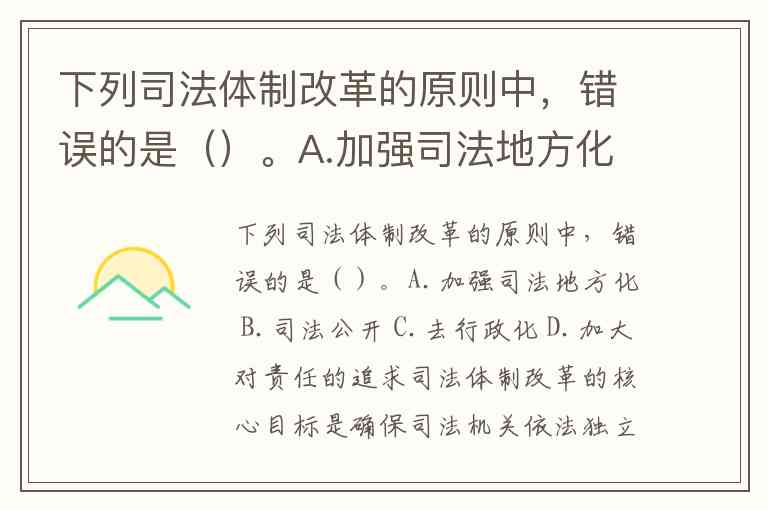 下列司法体制改革的原则中,错误的是()。A.加强司法地方化 B.司法公开 C.去行政化 D.加大对责任的追求