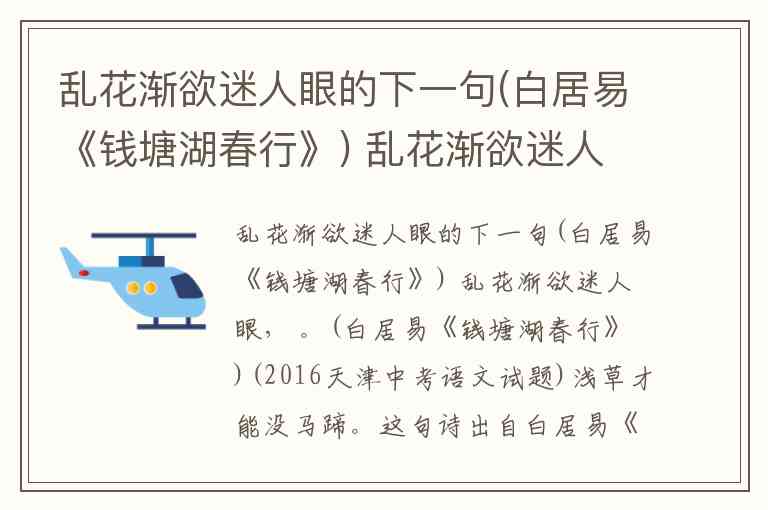 乱花渐欲迷人眼的下一句(白居易《钱塘湖春行》) 乱花渐欲迷人眼, 。(白居易《钱塘湖春行》)(2016天津中考语文试题)