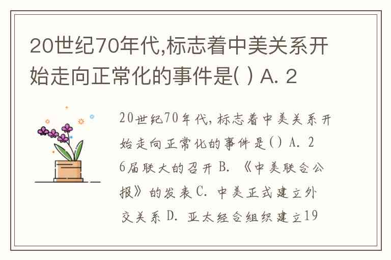 20世纪70年代,标志着中美关系开始走向正常化的事件是( ) A. 26届联大的召开 B. 《中美联合公报》的发表 C. 中美正式建立外交关系 D. 亚太经合组织建立