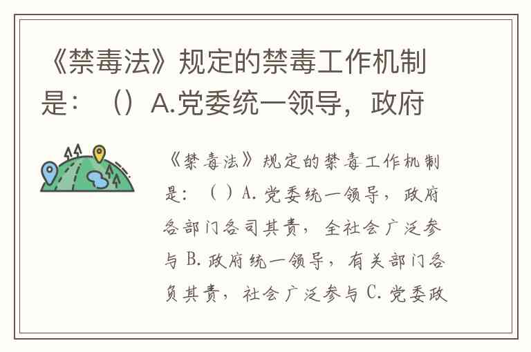《禁毒法》规定的禁毒工作机制是:()A.党委统一领导,政府各部门各司其责,全社会广泛参与 B.政府统一领导,有关部门各负其责,社会广泛参与 C.党委政府统一领导,各有关部门各司其责,社会广泛参与 D.党委政府领导,各有关部门各负其责,全社会广泛参与