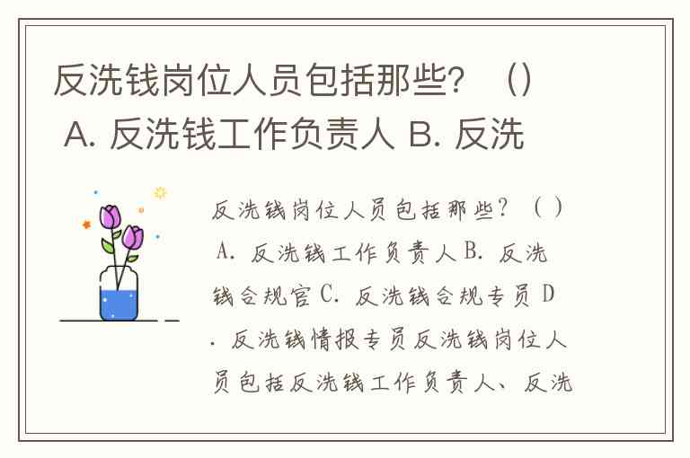 反洗钱岗位人员包括那些?() A. 反洗钱工作负责人 B. 反洗钱合规官 C. 反洗钱合规专员 D. 反洗钱情报专员