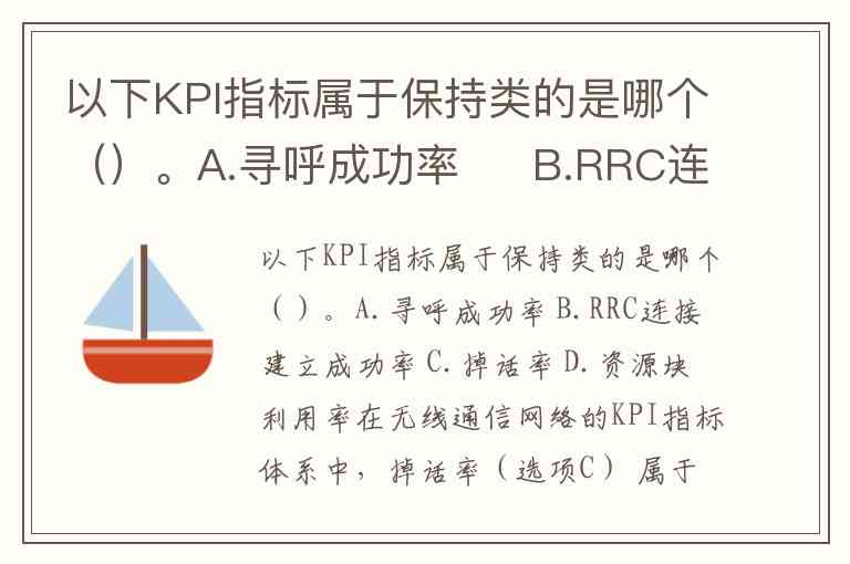 在无线通信网络的KPI指标体系中,掉话率(选项C) 属于典型的保持类指标。这类指标聚焦于评估网络维持现有连接的能力,直接反映通信过程的稳定性。