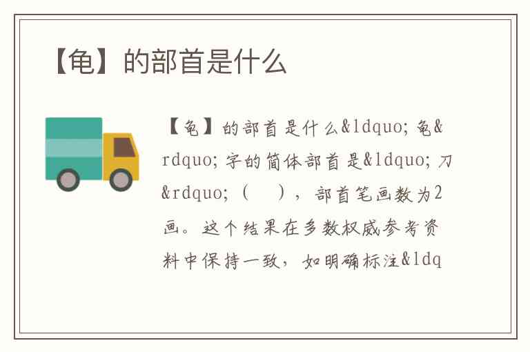 “龟”字的简体部首是“刀”(⺈),部首笔画数为2画。这个结果在多数权威参考资料中保持一致,如明确标注“简体部首:刀”,且可通过字形拆分进一步验证——“龟”字为上下结构,上部可拆解为“⺈”(刀部变体)与下部“电”的组合。