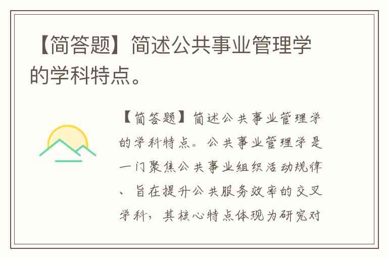 公共事业管理学是一门聚焦公共事业组织活动规律、旨在提升公共服务效率的交叉学科,其核心特点体现为研究对象的特定性、知识体系的跨学科性、实践导向的鲜明性,以及价值追求的公共性。