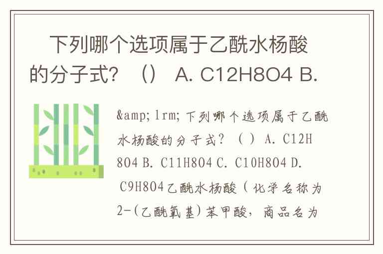 下列哪个选项属于乙酰水杨酸的分子式?() A. C12H8O4 B. C11H8O4 C. C10H8O4 D. C9H8O4