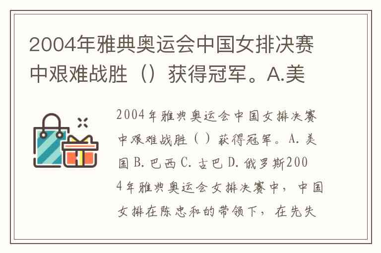 2004年雅典奥运会中国女排决赛中艰难战胜()获得冠军。A.美国 B.巴西 C.古巴 D.俄罗斯