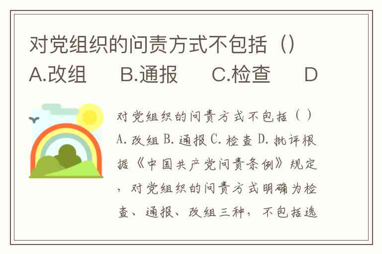 对党组织的问责方式不包括()A.改组 B.通报 C.检查 D.批评