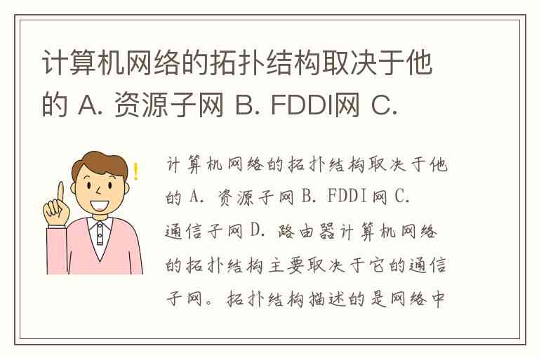 计算机网络的拓扑结构取决于他的 A. 资源子网 B. FDDI网 C. 通信子网 D. 路由器