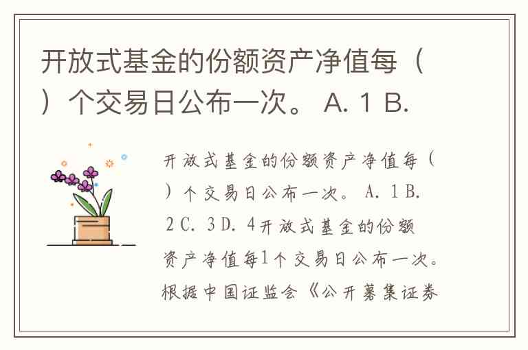 开放式基金的份额资产净值每()个交易日公布一次。 A. 1 B. 2 C. 3 D. 4
