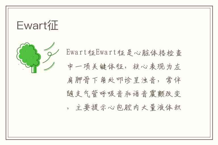 部分文献提及心尖搏动减弱、心音遥远等伴随体征,这些其实是心包积液本身的表现,而非Ewart征的特异性特征。