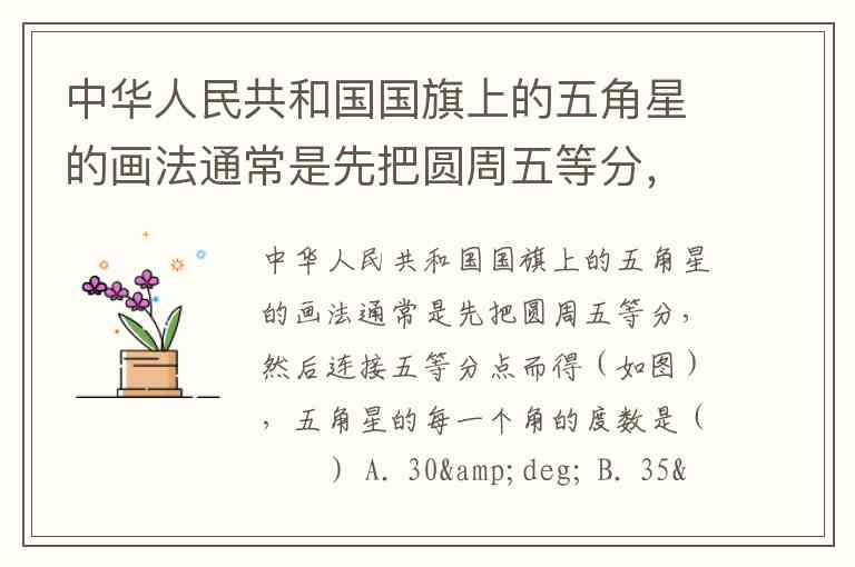 要确定中华人民共和国国旗上五角星每个角的度数,需从正五角星的几何性质出发。正五角星的五个锐角顶点度数相等,可通过圆周角与中心角的关系或多边形内角和公式推导得出。