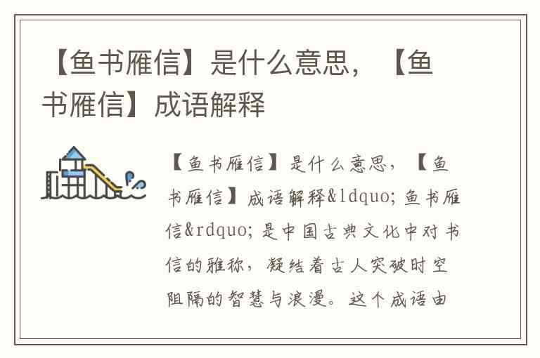 作为固定成语,“鱼书雁信”最早见于元代《雍熙乐府》的散曲“总是伤情别离,则这鱼书雁信,冷清清杳无踪迹”,明确指向因离别产生的书信期盼。它的核心含义是泛指书信,尤侧重传递思念之情的文字往来,既包含对亲友的牵挂(如李清照“云中谁寄锦书来”的怅惘),也承载家国情怀(如苏武故事中的忠贞信念)。在用法上,多作宾语或定语,用于书面语,如“鱼书雁信稀”常用来形容音信渺茫的无奈。