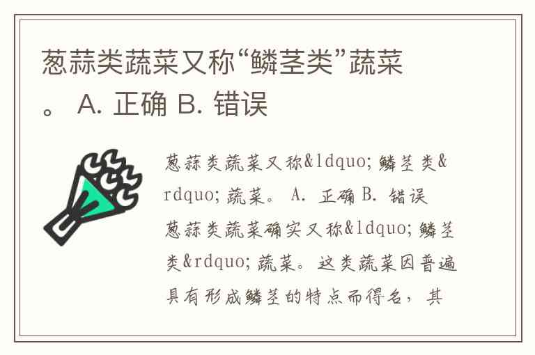 葱蒜类蔬菜又称“鳞茎类”蔬菜。 A. 正确 B. 错误