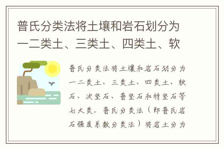 普氏分类法将土壤和岩石划分为一二类土、三类土、四类土、软石、次坚石、普坚石和特坚石等七大类。