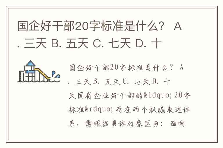 国企好干部20字标准是什么? A. 三天 B. 五天 C. 七天 D. 十天