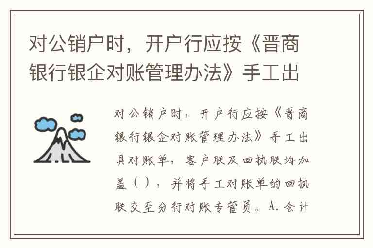 对公销户时,开户行按《晋商银行银企对账管理办法》手工出具的对账单,其客户联及回执联均需加盖对账业务专用章。这一要求在两份权威文件中得到明确:《晋商银行银企对账管理办法》直接规定手工对账单需加盖此印章,而《关于规范部分柜面业务操作的通知(2015)-109号》进一步细化,强调销户场景下客户联与回执联均须加盖开户行"对账业务专用章",并明确回执联需交至分行对账专管员。