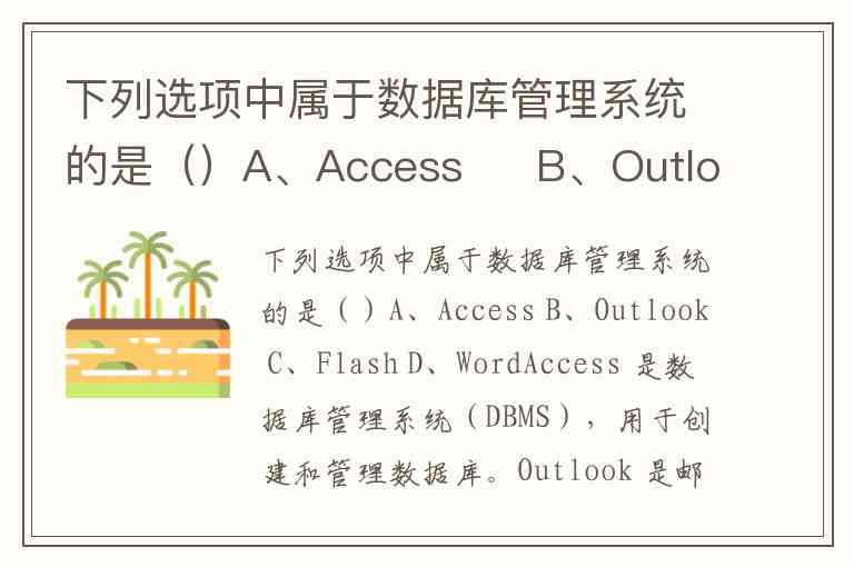 下列选项中属于数据库管理系统的是()A、Access B、Outlook C、Flash D、Word