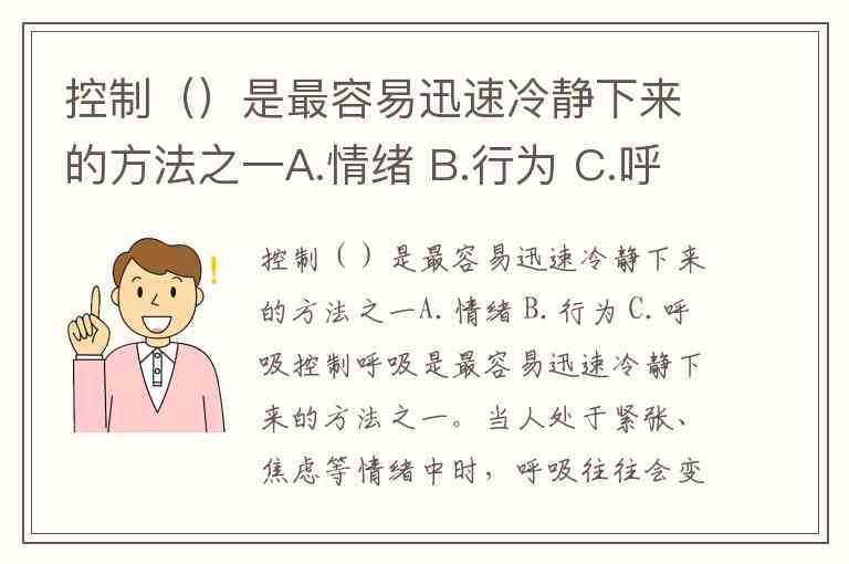 控制()是最容易迅速冷静下来的方法之一A.情绪 B.行为 C.呼吸
