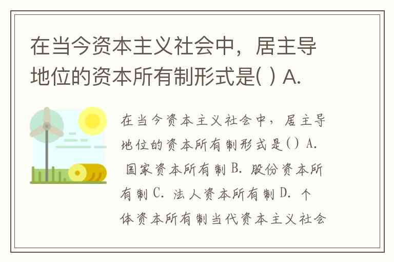 在当今资本主义社会中,居主导地位的资本所有制形式是( ) A. 国家资本所有制 B. 股份资本所有制 C. 法人资本所有制 D. 个体资本所有制