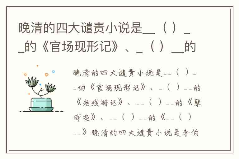 晚清的四大谴责小说是__( )__的《官场现形记》、_( )__的《老残游记》、__( )__的《孽海花》、__( )__的《__( )__》