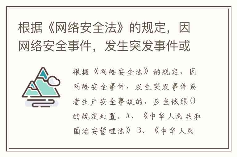 从选项来看,B(安全生产法) 和 D(突发事件应对法) 分别对应两种事故类型,因此均为正确答案。而A选项《治安管理法》主要规范社会治安秩序,C选项《食品安全法》针对食品生产经营领域,二者均与网络安全事件的处置无直接关联。