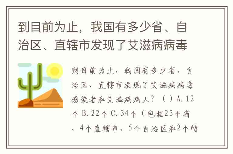 到目前为止,我国有多少省、自治区、直辖市发现了艾滋病病毒感染者和艾滋病病人?()A.12个 B.22个 C.34个(包括23个省、4个直辖市、5个自治区和2个特别行政区)