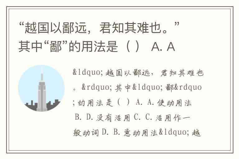 “越国以鄙远,君知其难也。”其中“鄙”的用法是( ) A. A.使动用法 B. D.没有活用 C. C.活用作一般动词 D. B.意动用法