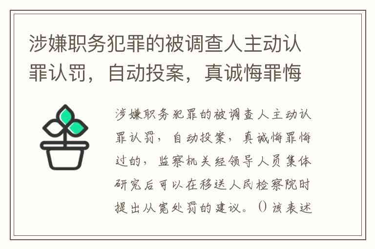 涉嫌职务犯罪的被调查人主动认罪认罚,自动投案,真诚悔罪悔过的,监察机关经领导人员集体研究后可以在移送人民检察院时提出从宽处罚的建议。()