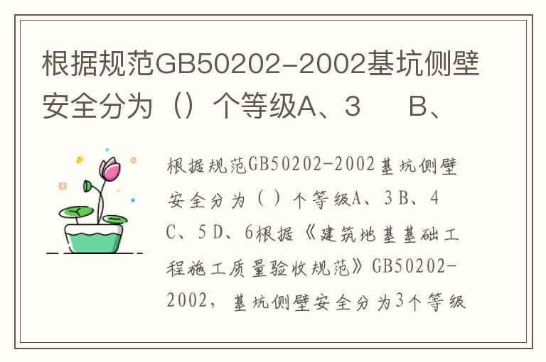 根据规范GB50202-2002基坑侧壁安全分为()个等级A、3 B、4 C、5 D、6
