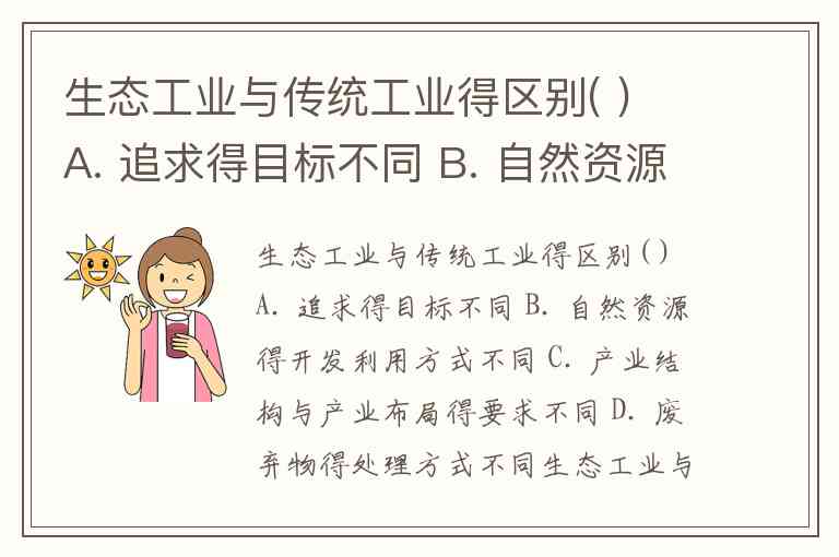 这四个维度的差异共同构成了工业文明的范式转型。当传统工业的“高消耗、高污染、低循环”模式遭遇资源约束与环境危机时,生态工业成为实现可持续发展的必然选择。理解这些区别,不仅有助于解答考试题目,更能帮助我们把握未来工业发展的方向——如何在保持经济增长的同时,守护好人类共同的生态账户。