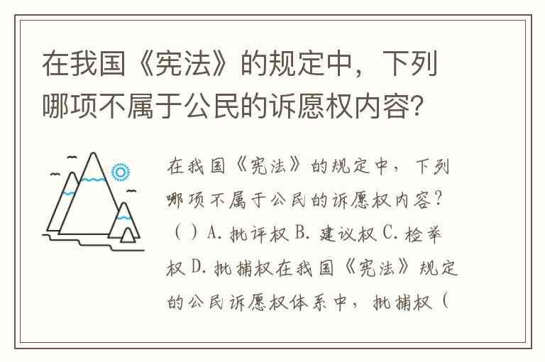 在我国《宪法》的规定中,下列哪项不属于公民的诉愿权内容?()A.批评权 B.建议权 C.检举权 D.批捕权