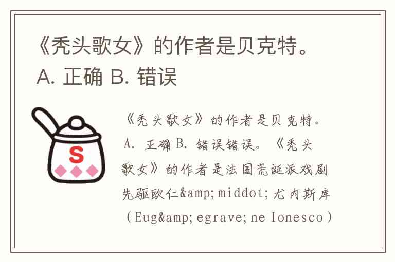 《秃头歌女》的作者是贝克特。 A. 正确 B. 错误