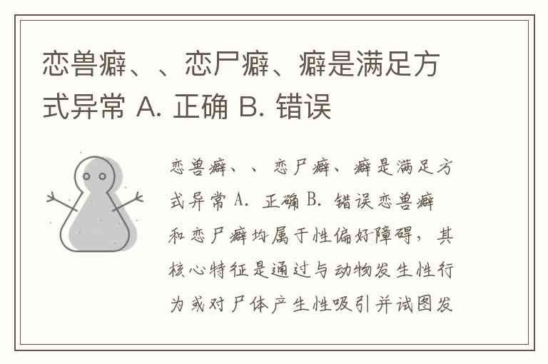 恋兽癖、、恋尸癖、癖是满足方式异常 A. 正确 B. 错误