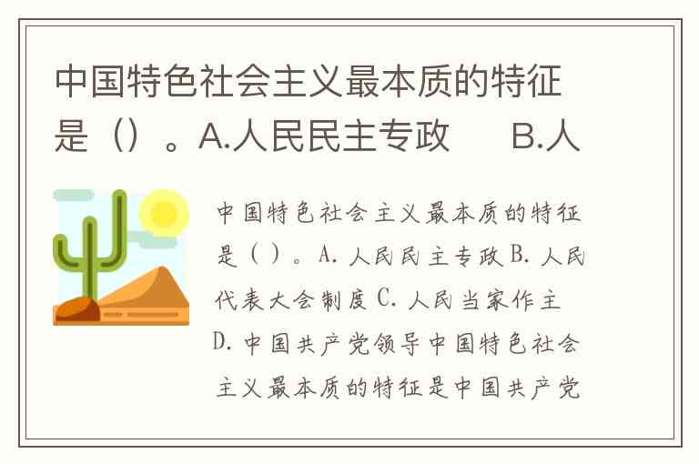 中国特色社会主义最本质的特征是()。A.人民民主专政 B.人民代表大会制度 C.人民当家作主 D.中国共产党领导