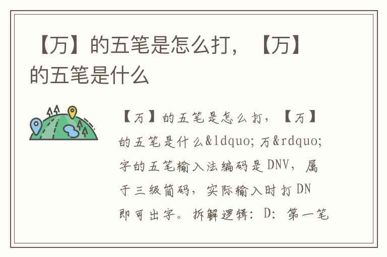 “万”字的五笔输入法编码是 DNV,属于三级简码,实际输入时打 DN 即可出字。