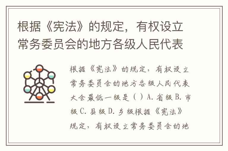 根据《宪法》的规定,有权设立常务委员会的地方各级人民代表大会最低一级是()A.省级 B.市级 C.县级 D.乡级