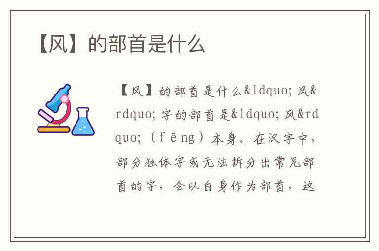 “风”字的部首是“风”(fēng)本身。在汉字中,部分独体字或无法拆分出常见部首的字,会以自身作为部首,这类部首称为“单笔部首”或“本身字部首”。