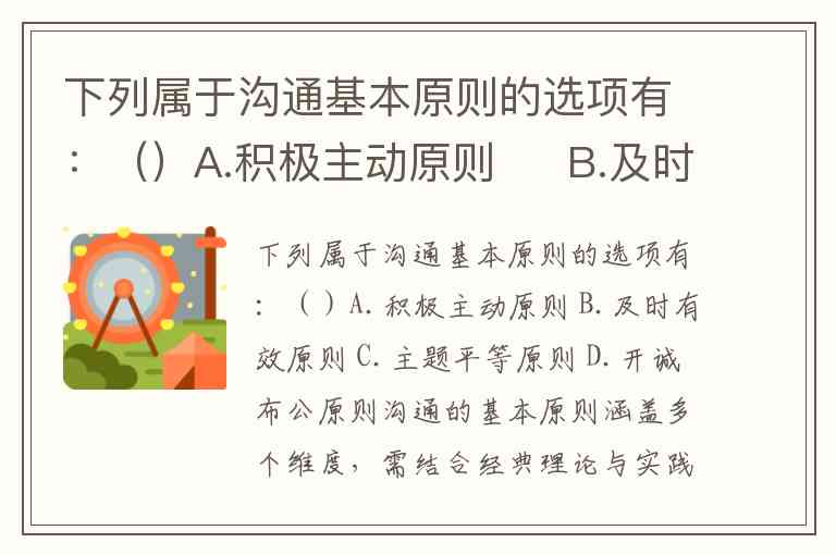 沟通的基本原则涵盖多个维度,需结合经典理论与实践场景综合判断。从学术研究和实践经验来看,A.积极主动原则、B.及时有效原则、C.主题平等原则、D.开诚布公原则均属于沟通的核心准则。
