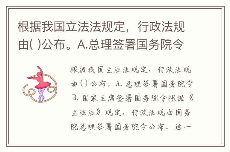 根据我国立法法规定,行政法规由( )公布。A.总理签署国务院令 B.国家主席签署国务院令