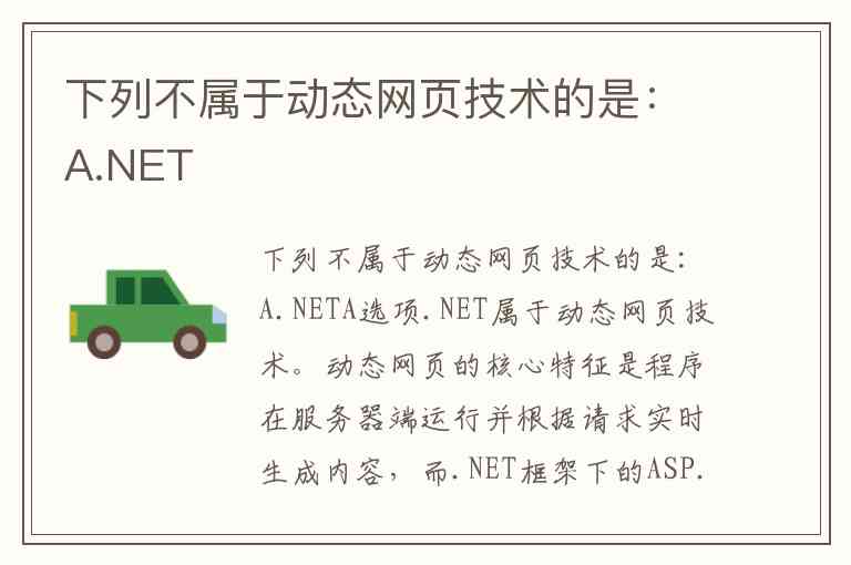 若题目选项中存在静态技术(如HTML、CSS)或客户端脚本(如纯JavaScript),则可能为正确答案。但就本题而言,.NET是典型的动态网页技术框架。